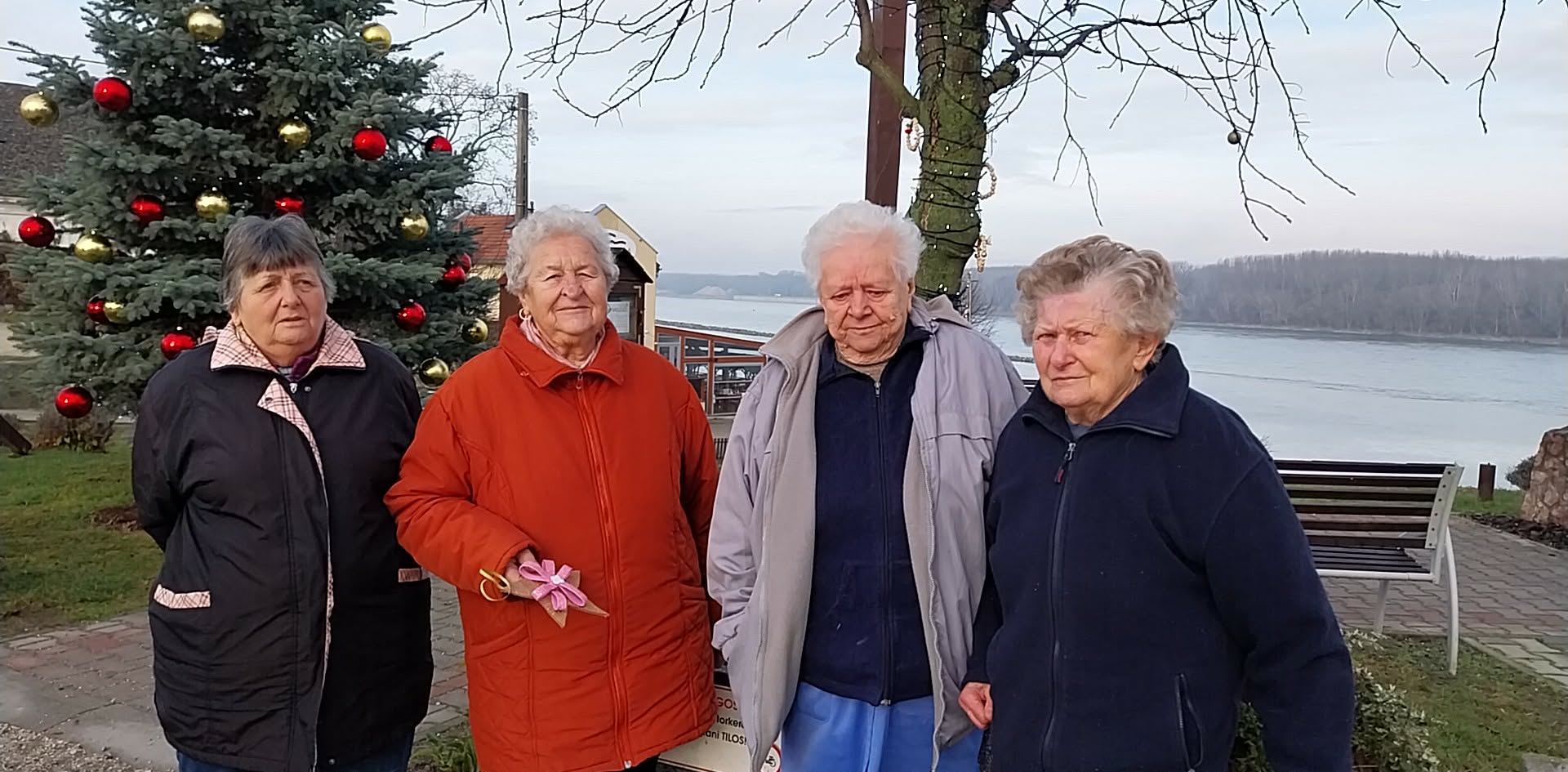Idősek Klubja tagjai az általuk elkészített karácsonyi díszekkel járultak hozzá a Háry Dezső tér fáinak szebbé tételéhez.