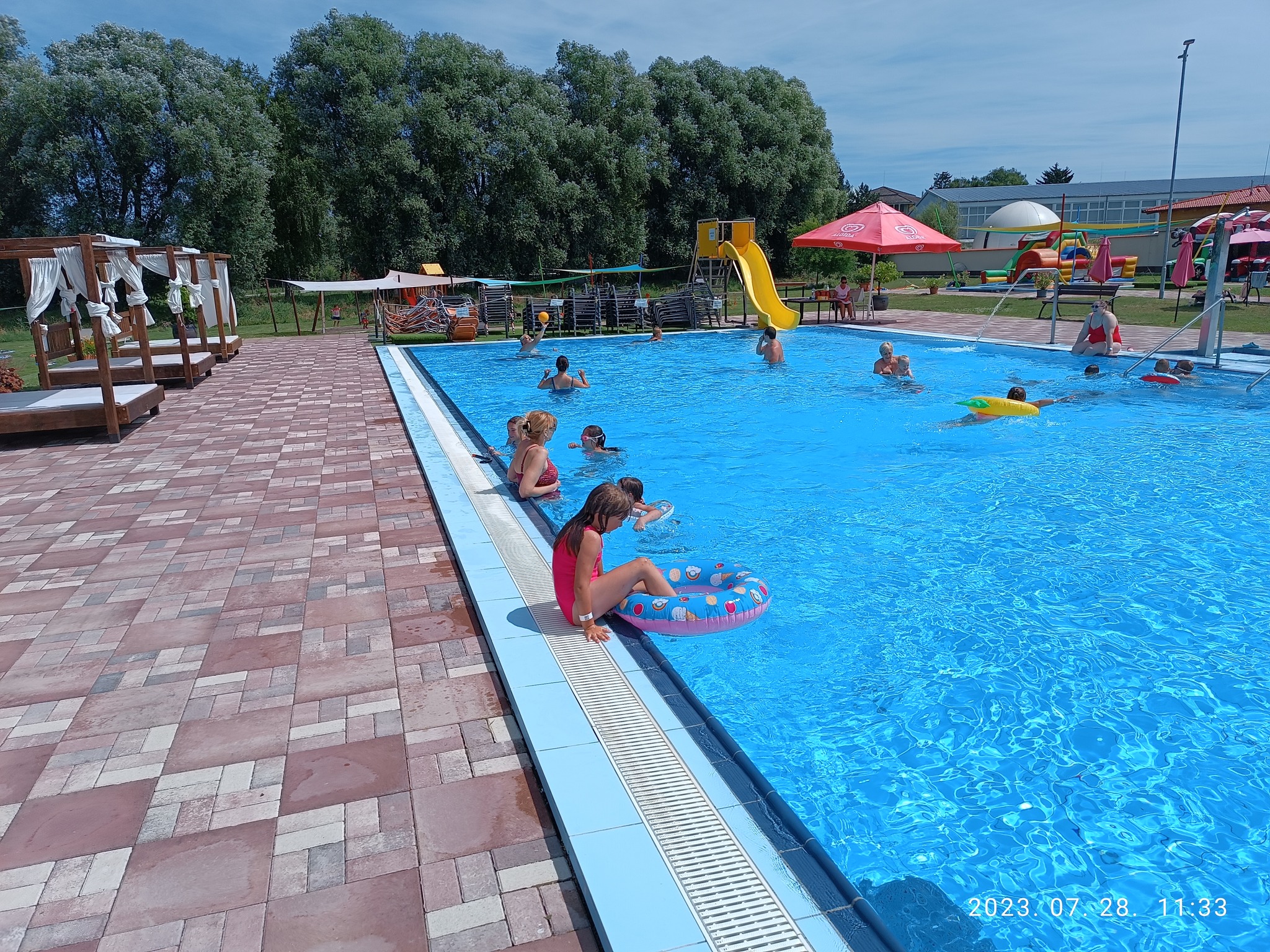 Intézményünk idén ismét napközis tábort szervezett azon gyermekek számára, akik valamilyen formában kapcsolatban álltak/állnak a Gönyűi Család- és Gyermekjóléti Szolgálattal. A program újra a Pajtában valósult meg július utolsó hetében, ahol 20 gyermek önfeledt kikapcsolódásáról gondoskodtunk. Minden gyermek számára ingyen biztosítottuk a táborozási lehetőséget napi háromszori étkezéssel. Az idei tábor fő célja a különböző szakmák bemutatása volt, ami esetleg segítséget jelenthet a gyerekek későbbi pályaválasztásához is. A résztvevők több szakma rejtelmeibe is betekintést nyerhettek, mint fodrász, masszőr, cukrászat – üzemlátogatással egybekötve, kalandoztak a horgász etetőanyagok világában és megismerték az előállítási folyamatot, hajósok életét fedezték fel – Széchenyi Jégtörő hajó bejárása és Hajósmúzeum látogatása, majd Xantus János Állatkertben az állatgondozói tevékenységet, Bábolnai Strandon az úszómesterséget.