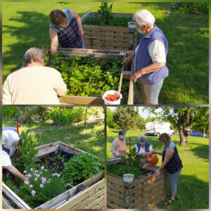 Magaságyásunk újabb palántákkal gazdagodott a szorgos kezek által és közösen „leszüreteltük” a levelek között megbúvó első eperszemeket!